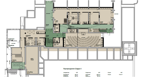 - Eine neue Treppe führt in das Untergeschoss, in welchem neben vier Künstlergarderoben auch ein Lager- und ein Archivraum (evtl. auch mit Übe-Orgel) gebaut werden.